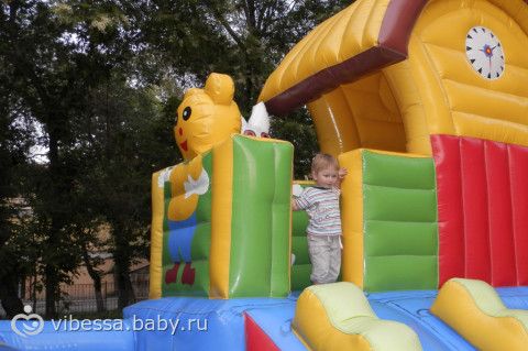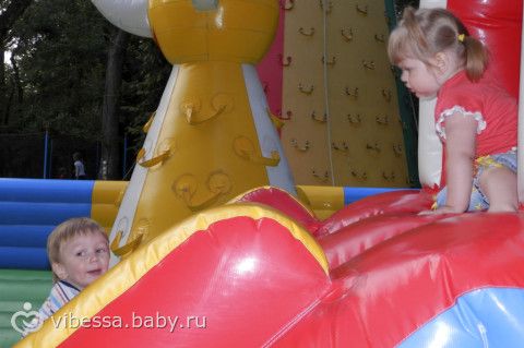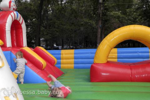 Потом и до надувного батута добрались. Лиза бегом помчалась, Глеб с опаской (но потом разошелся). Лиза все ждала, когда Глеб на горку сможет забраться… А он все скользил с нее.