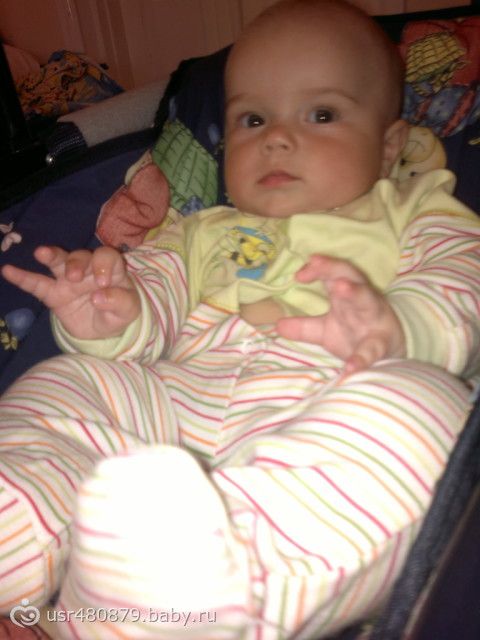 вот и исполнилось нам 5 месяцев! растем! кушаем уже все по немногу:)только вот в этом месяце сбросили 100 грамм! были 8100 в 4 месяца, а сейчас 8000, я если честно расстроилась немного! Вот вторую прививку акдс сделали, перенесли хорошо.и еще ванюша сегодня первый раз сам сел, не надолго правда зато сам!