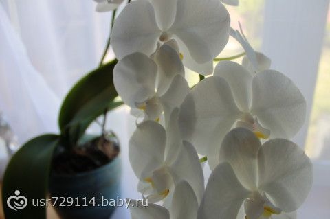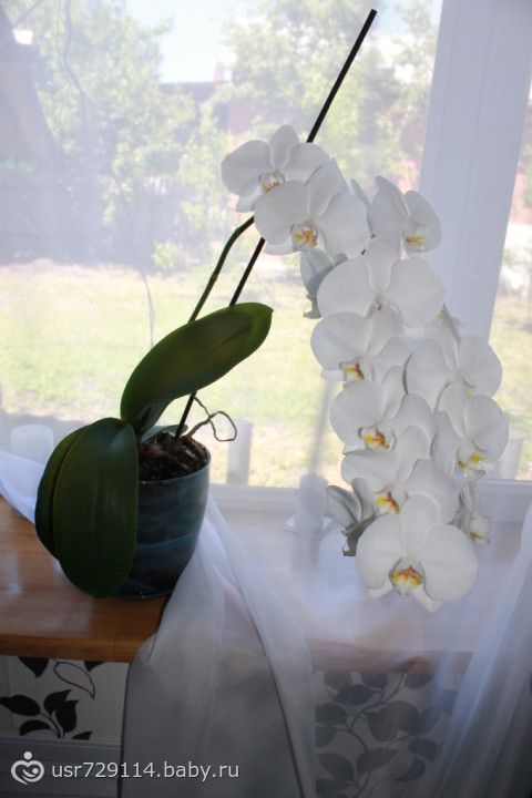 вот она))наконец то зацвела вся! уже месяца 1,5 как она начала расцветать!)покупали синюю правда… думали такая и будет, оказалась крашеная, теперь у нас белая)))девочки, у кого есть орхидеи, выкладывайте фото!)