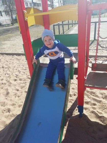 Любознайка и болтушка! Очень интересующийся ребенок.Ему все интересно, везде нужно залезть.В общем, только смотри за ним))) Говорит много, повторяет все слова. Говорит коротенькие предложения типа «мама пошли туда», «Папа где?», «Мальчики пока, пока», «Горка горячая» и главное «Я сам!"))
