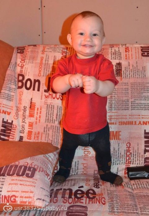 итак что умеет Владюша, сидеть, стоять сам(не долго), ходить довольно таки быстро за ручки, ползать, ходить по опоре, активно бегает в ходунках, горшок будем начинать осваивать на днях)кушаем всё что можно в его возрасте)нравится когда с ним играют в ладушки и козуу)), но сам пока не умеет=(, показывает «пока»)