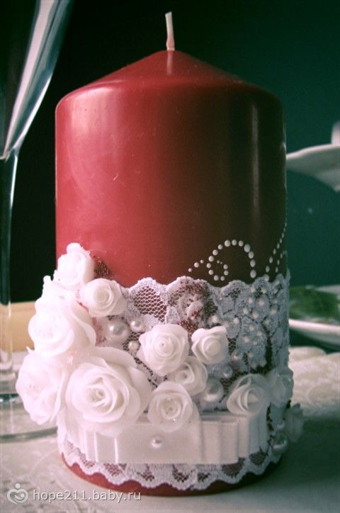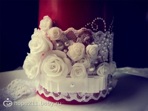 Девочки! спешу поделиться с вами))) свечи для свадьбы Белоснежки)))… просто свадьба тематическая. Сразу скажу, что невеста сама желала побольше цветов, кружева и бусин… я постаралась угодить) Реакцию заказчицы еще не знаю))), но надеюсь понравятся)