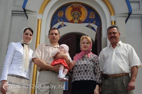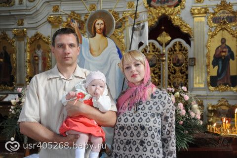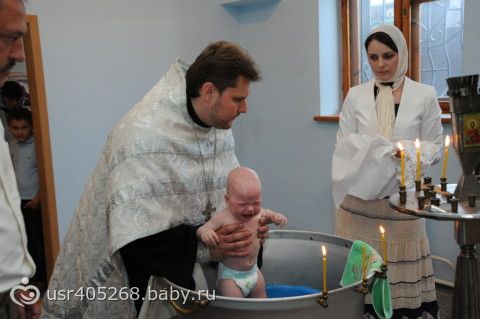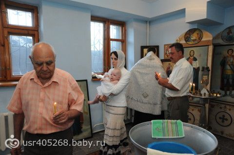 2. Крестили в памперсе (видимо были случаи...) и не в купели полной воды. А в купель поставили синий тазик, из него и похлюпали водичкой. А я уж переживала, что Юле придется нырять и не дай Бог наглотаться, хоть и святой, но воды!!!