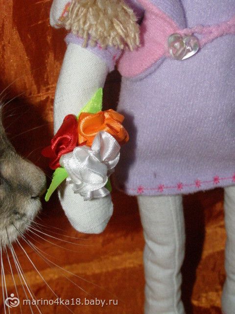 Делали тильдочку зайчиху, и решила сделать ее с букетиком роз, вот как я делала эти розочки. Раскажу в 3 поста.