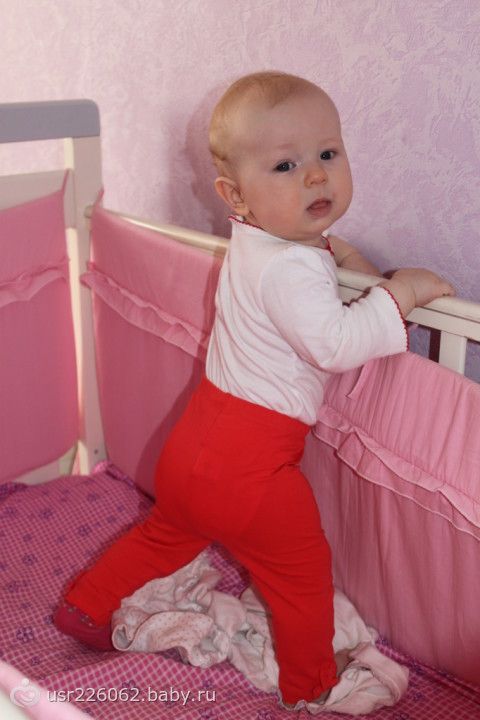 Моя дочка встала сама у опоры в кроватке.Ей всего 7,5 месяцев.Теперь как только кладу в кровать она сразу встает и тусуется у перил