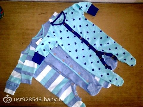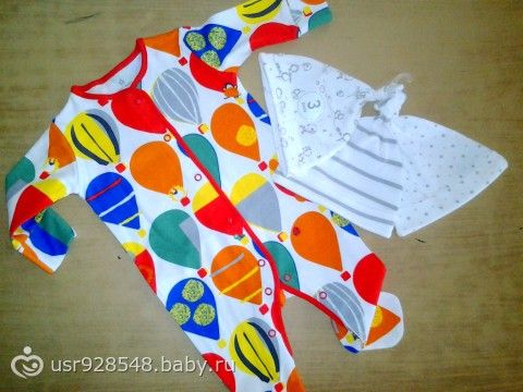 Наконец-то и я получила нашу посылочку.Привезли еще в четверг, как раз к моему д.р., что приятно порадовало.Очень довольна качеством вещей, подумываю теперь еще что-нибудь заказать.Брала размеры на 56 и 62, но что-то на мой взгляд они большеваты.Поэтому, думаю, что будем их носить попозже и подольше.Ну и немного похвастушек