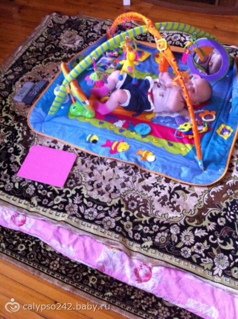 Температура на полу 24,5, постелила покрывало, плед в два слоя, одеяло свое и еще одно покрывало и сверху коврик, вот так и лежим играем. Пол деревянный.