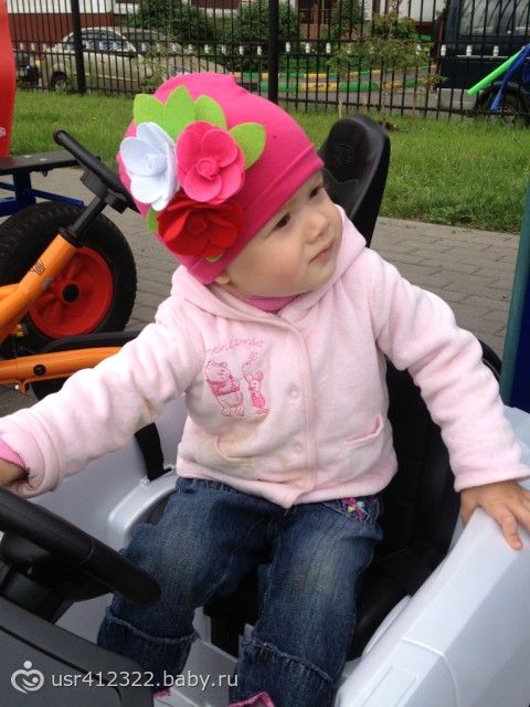 Гуляли сегодня в парке, а там платные машинки для детей стоят — моя сразу залезла)))