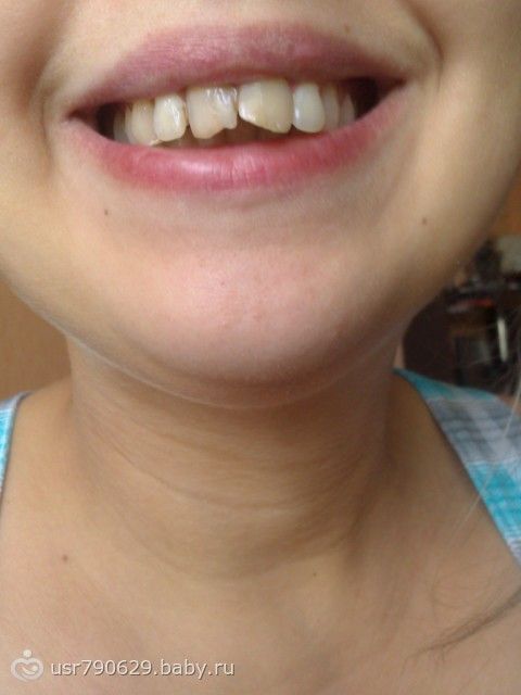 Предистория такова: в нежном возрасте — около 2-х лет, я упала и ударилась зубами о корягу, итог: удалили передний верхний резец и зубы росли не одновременно.