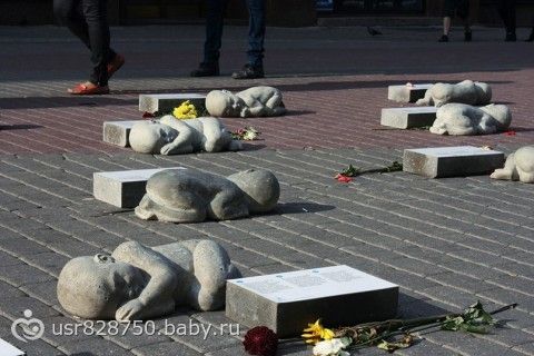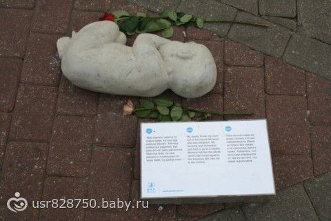 27 нерожденных младенцев из бетона лежат на мостовой в центре Риги. Ровно столько маленьких мальчиков и девочек, не увидевших солнце, ежедневно становятся медицинским материалом. Годным для изготовления дорогой косметики, но не годным для жизни. Рядом с каждым каменным младенцем тумба, где на трех языках, коротко и понятно объясняется, почему этому крошечному человеку не позволили жить. Почему его крошечное сердце перестало биться. Что стало причиной аборта.