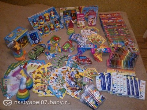 Накупили игрушек, фломастеров, пластелин, книжки, раскраски, прописи, игры развивалки, конструктор, альбомы для рисования, конструктор большой, карандаши цветные, мелки, погремушки, пианинки, резиновые игрушки, рули, умные телефоны, коты томы повторялки 4 шт, шарики, батарейки, боулинг, кольцеброс, в общем всего по немногу, но в общем получилось придостаточно! Завтра еду к 9,00 в детский дом, там встречаюсь с людьми из организации «Сантехэнергопроект», они тоже собрали деньги и закупились подарками! В общем с меня фото отчет, а вам всем огромное спасибо, кто не остался равнодушным!