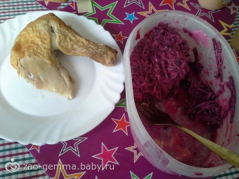 Обед: курочка на гриле и шуба без селедки, заправленная активией