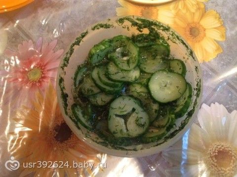 Берём огурчики, режем дольками или кружочками-выкладываем в контейнер или в мисочку, половина пучка укропа мелко порезать, добавить 2 зубчика чесночка, и соль (смотрим на количество огурчиков). закрываем контейнер всё встряхиваем и оставляем минут на 30 закрытыми)) такая вкуснотища да ещё и с картошечкой мммммммммммм