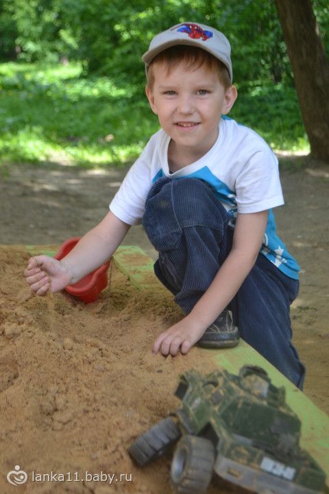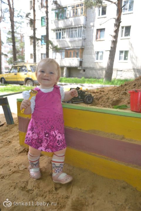 ГЕлька модница!!! Никита в песочнице излучает счастье))