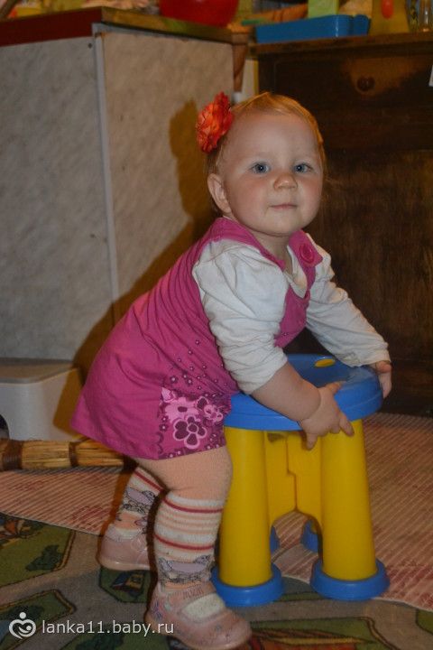 А это кстати наш любимый стул, она его с лёгкостью поднимает и таскает с собой (причём идёт с ним в руках и не падает )