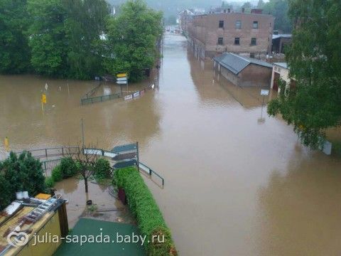 Эти кадры городов и посёлков в отдалённости 30 км от нашего города… Вода, вода, кругом вода!!!Слава Богу в моём городе пока не столь печальная обстановка, хотя сирены пожарных и полиции не прекращают звучать то тут, то там, но опасность выхода воды на дороги крайне велика.Наша речка протекает в центре города и уровень воды в ней достиг наивысшей точки… Но Плауэн точно не потонет, я в это верю!!!