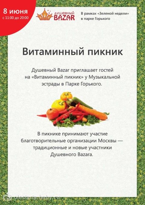 8 июня (суббота) с 11 до 20 наш благотворительный фонд «Дорога в жизнь» будет на Витаминном пикнике в Парке Горького!