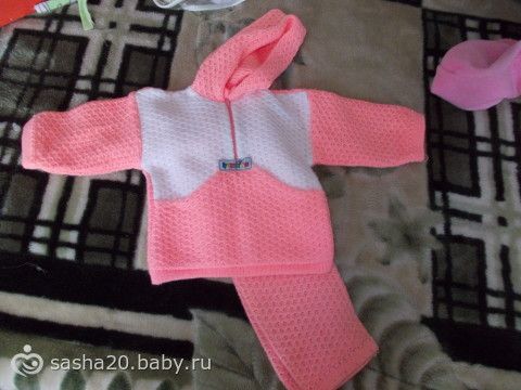 Этот костюмчик мы стали одевать в 3-4 месяца на прогулку… Вязанный, тепленький… В зиму в самый раз будет))