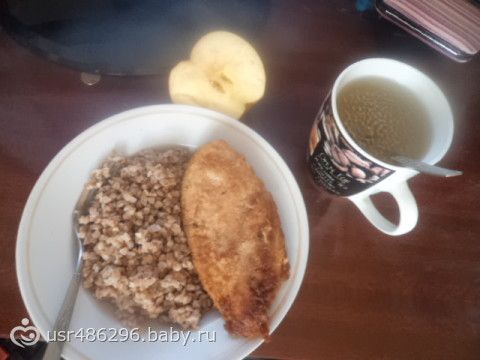 обед: гречка и вторая филе, зеленый чай