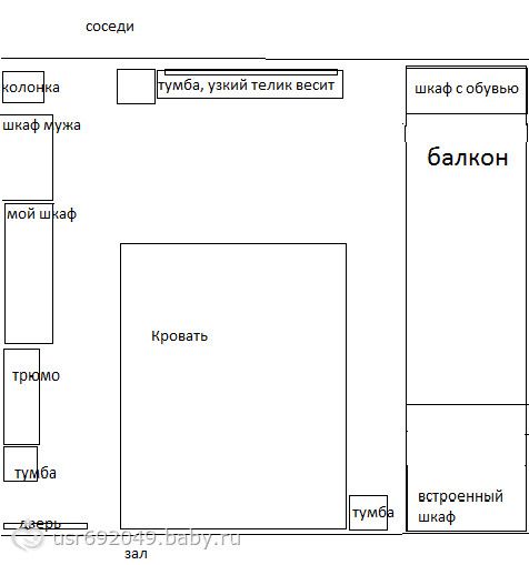 утеплить балкон, перенести туда ненужные шкафы. Если есть возможность смотреть телек в другой комнате, то убрать телек. Мы в спальне за полгода не включали ни разу )))) Ну и свой шкаф разобрать — в плане вещей и поделиться с мужем. А его шкаф — для не особо важных вещей на балкон