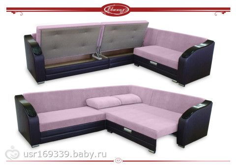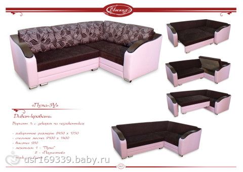 у нас смесь стилей вот этих диванов — угловой, подушки полосатые, но дизайн (кожзам и подлокотники) от второго. Плюс ещё на верху подголовник, ну так называли продавцы его)) и хромированные ножки внизу и под подголовником. я обожаю наш диван — он большой (большое именно спальное место, а сам он не громоздкий), ну и по стилю мне нравится — сдержанный, под любой интерьер!