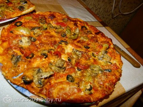 ммм..... внусняшка7 июня 2013 14:54 решила приготовить пиццу на тонком корже, у меня вся семья ее любит, вот что получилось