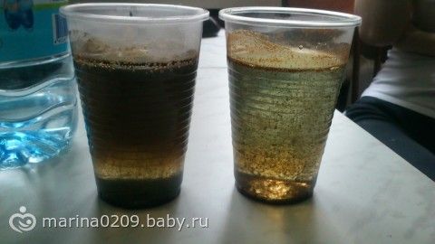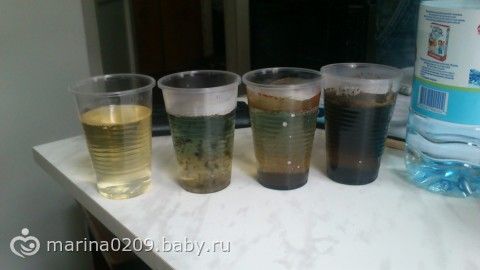 1. покупная взрослая 2. из под крана 3.кипяченая 4. агуша(черная из-за примесей, просто их очень много)а это в воду что-то добавили?