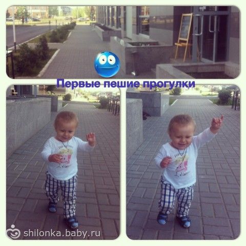 сынок то мой ходит)))по квартире свободно перемещается, во дворе гуляет сам, может даже вдоль всего дома сам пройти с 1 остановкой)))