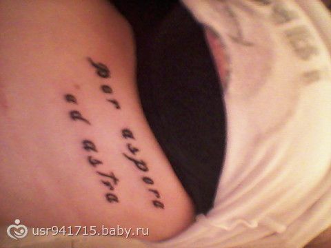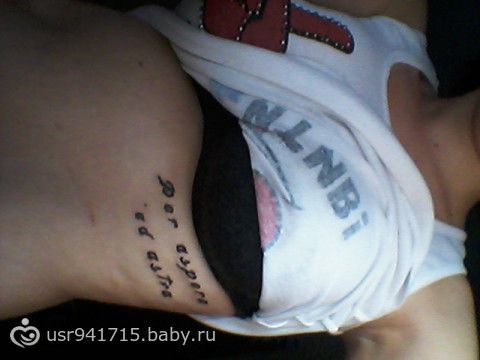 У меня таже надпись, на тыльной стороне руки,14 см.Сейчас бы уже не сделала, хотя о той, что есть сильно не жалею!