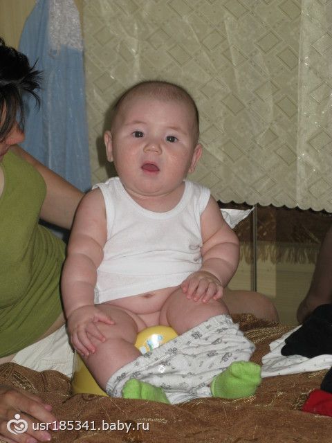 присаживаю его уже, а сам еще не скоро сядет, хотя с 3 месяцев пытается сесть)))