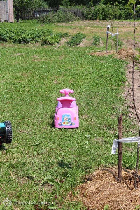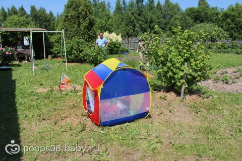 В субботу были на даче. Полине привезли ее раскладной дом, ее машину и качели..