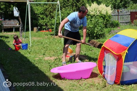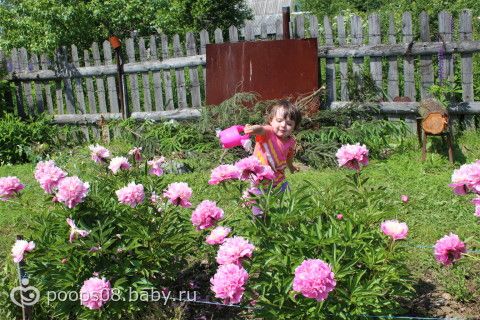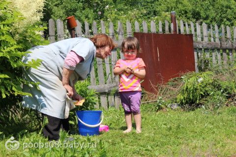 поливала, и еще раз поливала))) пыталась помочь прабабушкам рыхлить землю своими маленькими грабельками, но запала хватило ненамного..