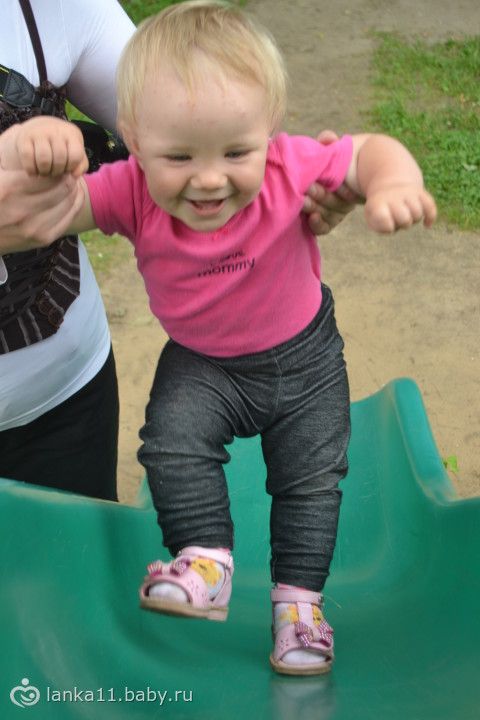 вот Ангелина умница! как здорово на горку сама залазиет)