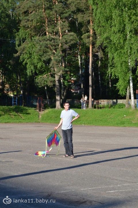 Ну а когда проснулись сразу побежали гулять, как раз дождь с грозой проспали))) И как раз муж вернулся))) Все вместе пускали воздушного змея, правда планировалась в лесу, но из-за сырости перенесли сие действо на школьную площадку. Ветра почти не было, так то пришлось побегать))