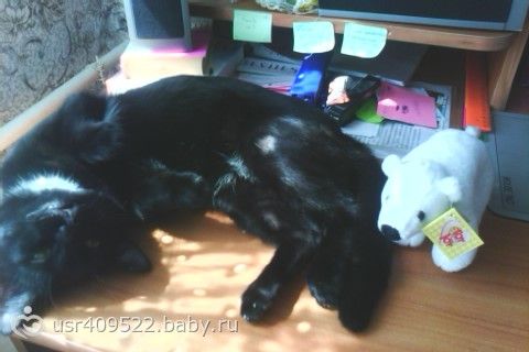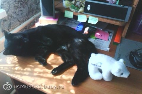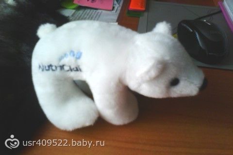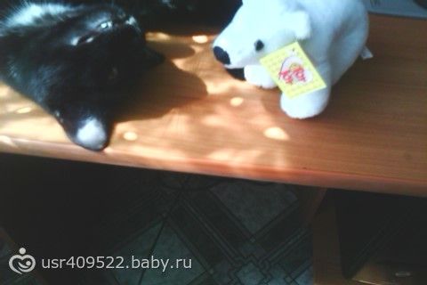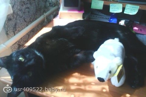 девочки пришел наконец медведь от нутрилона, уже думала не пришлют мне его, рада была такому сюрпризику(настроение последнее время было не самое радостное)а тут аж немного повеселее стало.Он такой мягкий, коту (Мише)тоже понравилась посылочка, только вот хотелось спросить вам приходил диск к нему или там так и должен быть только медведь? Фото собственно медведя и котика моего которому он приглянулся))