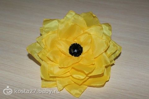 ооо класс!!! так и знала что именно ты мне что из этого покажешь))) а какую ткань ты брала для них? мне еще нравиться из лент атласных, очень простенько, а выглядит суперски? и как ты лепесточки по краям — прижигала???