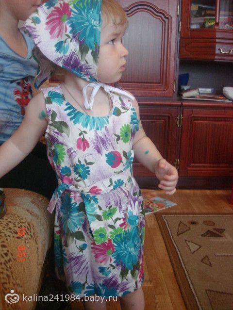 так вот… а тут меня вообще шибануло, я поняла что хочу что то сшить… на днях заезжала к бабуле, она мне отдала платье которое не носила вовсе и я решила сотворить)))) сама в шоке строго не судите… получился сарафан с пояском для дочи и косыночка...