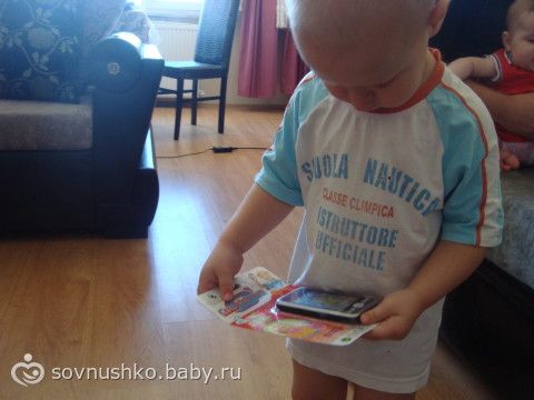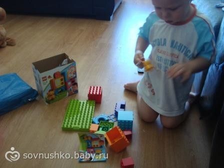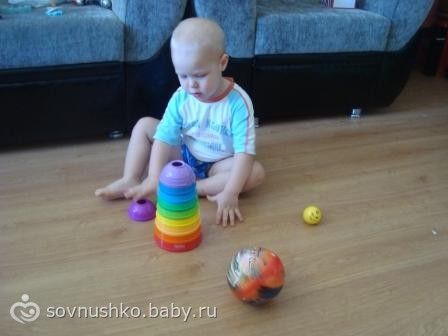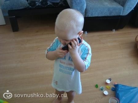 он сегодня целый день играет с рамидкой, потом с лего, а в промежутках бегает ищет телефон и болтает с тетей