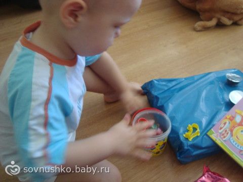пока засняла вкусняшки Илюха нашел набо теста для лепки с фигурками и начал расматривать