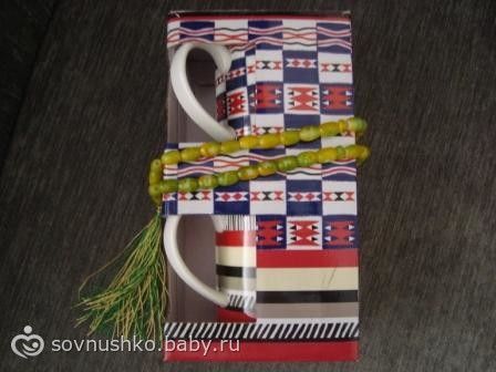 за тем мы раскрыли подарочек для папы.там были 2 чашки от расцветок, которых наш папа в восторге и четки, которые он забрал сразу к себе в машину