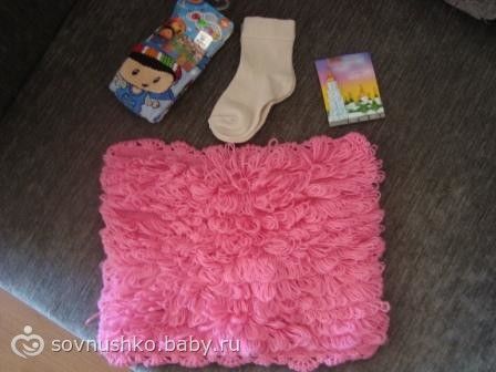 ) сделаный своими руками — его я отдам Эльки, так как на кануне Илюха нашел губку, которой я купаю доцю, и погрыз ее… от носочков с пэпи сына в полном в восторге
