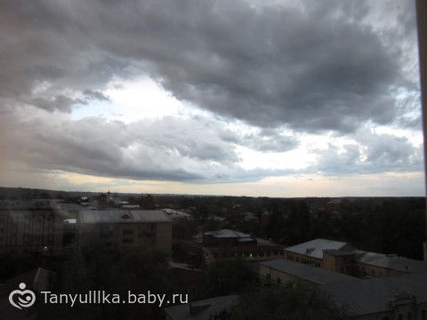 Собрались вчера вечером с мужем спать.А небо затянуло и собрался дождь.Небо было абалденно красивым.Большое облако темно серое октыло нам свое «лицо»..