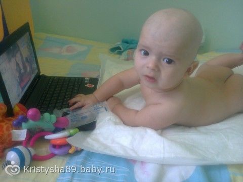 Ну начну вкратце с самого начала. В 2.5 месяцев у нас появилась непонятная сыпь. Педиатр нам сказала — Не волнуйтесь это потничка (купайте в череде). Ну так мы купались до 3-х месяцев. В три месяца ребенок был полностью покрыт мелкой сыпью, да так аж просветов здоровой кожи не было ни на лице, ни на ладошках, даже в волосах, грубая на ощупь.