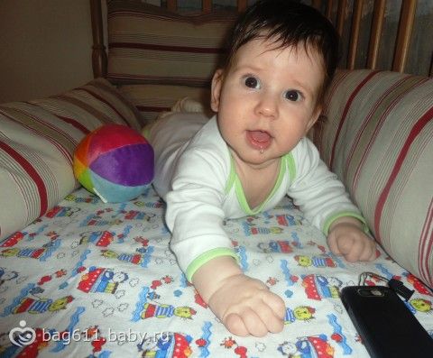 Когда на пузе лежит, тоже глазки в кучку — рассматривает пеленку или простынку под ним.