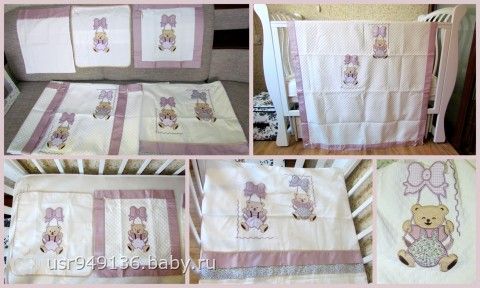 Сменное постельное бельё в кроватку, очень клёвое качество, турецкий комплект из 3-х наволочек, пододеяльника, простынки и пледа! лиловый, с милыми мишками))