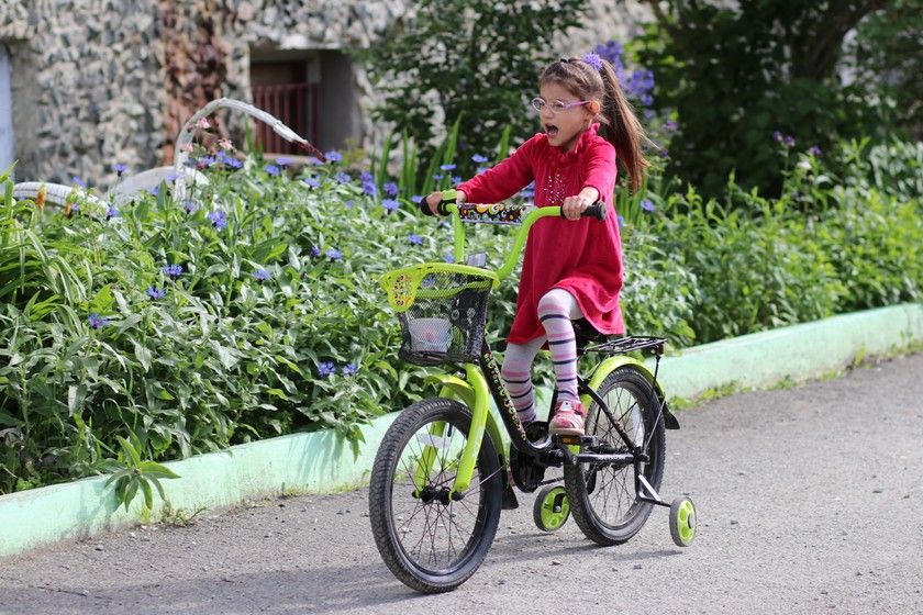 года в 3 каталась, и вполне нормально для доп.колес. А потом переклинило — вообще перестала к велу подходить, и сейчас предлагала ей купить, даже не отреагировала.
