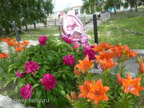 Хорошенькая, миленькая!!! Вон как замотали колясочку, мне тоже надо было, пока новая была, заматать скотчем, а то уже чужие детки, всё измазюкали(((Растите здоровенькими!!!