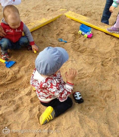 любим ползать в песочнице и пытаемся есть песок))))