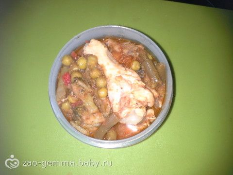 Обед: курочка тушеная с овощами ( горошек, брокколи, фасоль стручковая, томаты) в мульте.