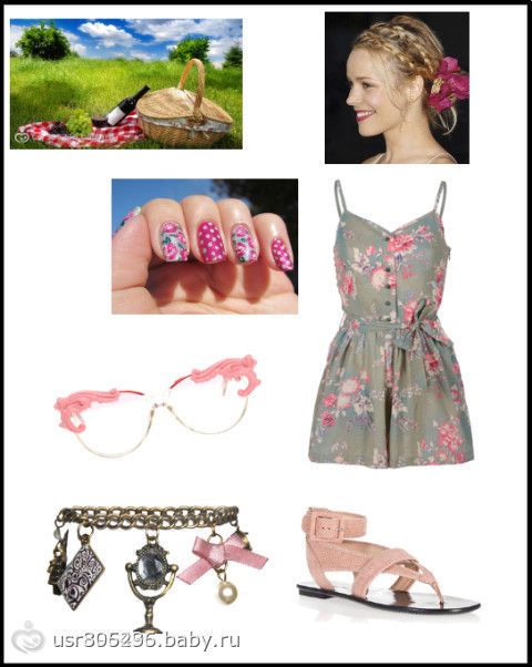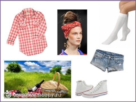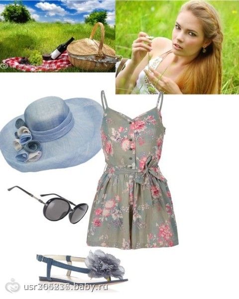 Задача:нужно было создать гармоничный образ ДЛЯ ДЕВУШКИ, предназначенный для пикника, КОТОРЫЙ МОЖЕТ, ПРИГОДИТСЯ В РЕАЛЬНОЙ ЖИЗНИ (НЕ НАДО СОЗДАВАТЬ КАРНАВАЛЬНЫЕ КОСТЮМЫ). В коллаж нужно было добавить данную картинку